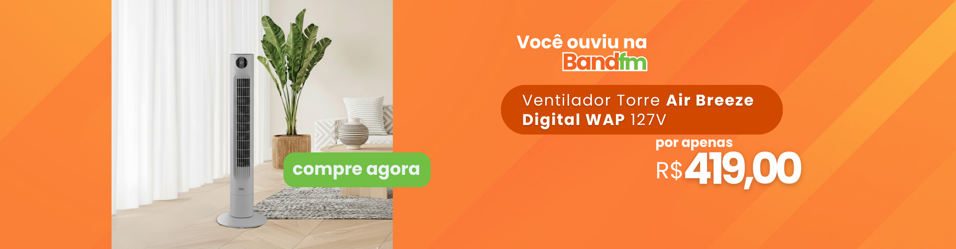 Ventilador WAP Torre Air Breeze Digital 127V FW012531 R$ 419,00 no Pixou R$ 419,00 em 3x de R$ 139,66 sem juros