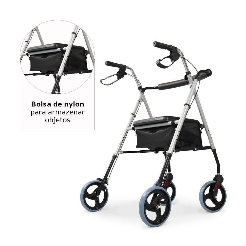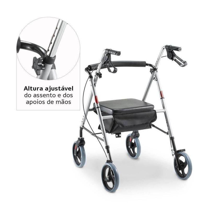 Andador Idoso 4 Rodas de Alumínio Dobrável Dellamed com Assento D12 6248