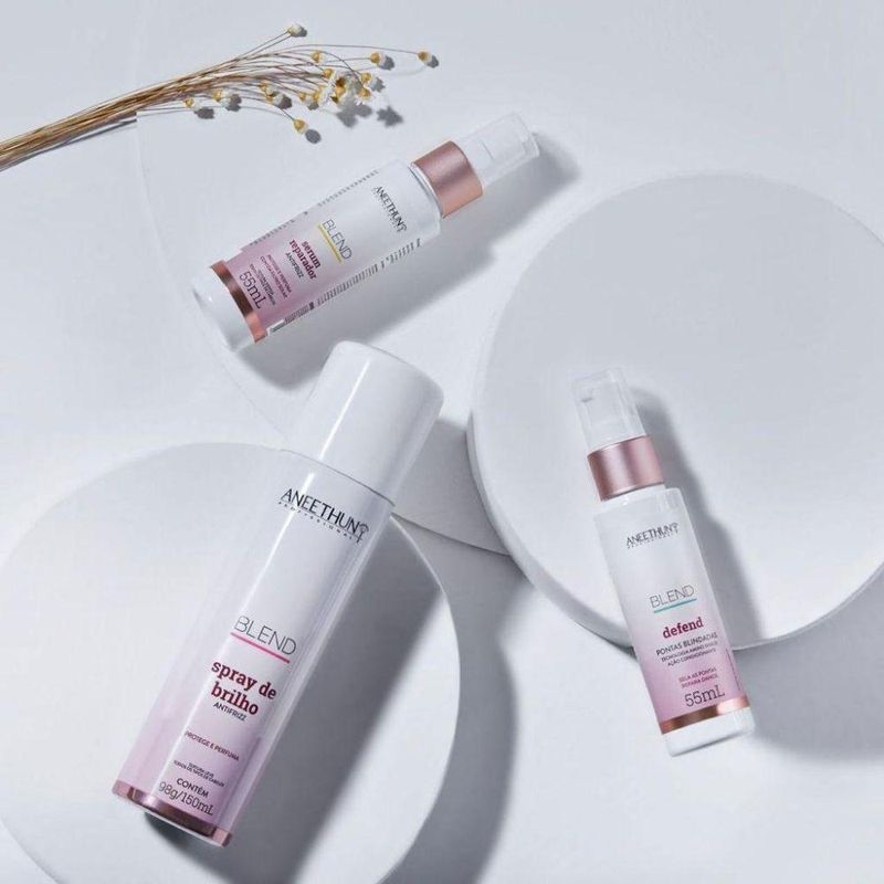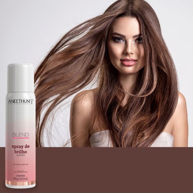 O Spray de Brilho Aneethun Blend forma um filme flexível que permite remodelar os fios sem deixar resíduos, conferindo um toque macio e perfumado ao longo do dia. Ele conta com filtro solar e é indicado para finalizar um penteado ou apenas trazer mais brilho para os cabelos.