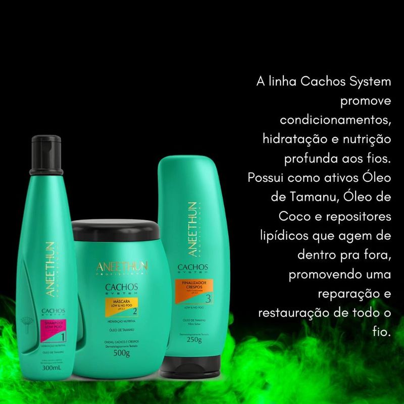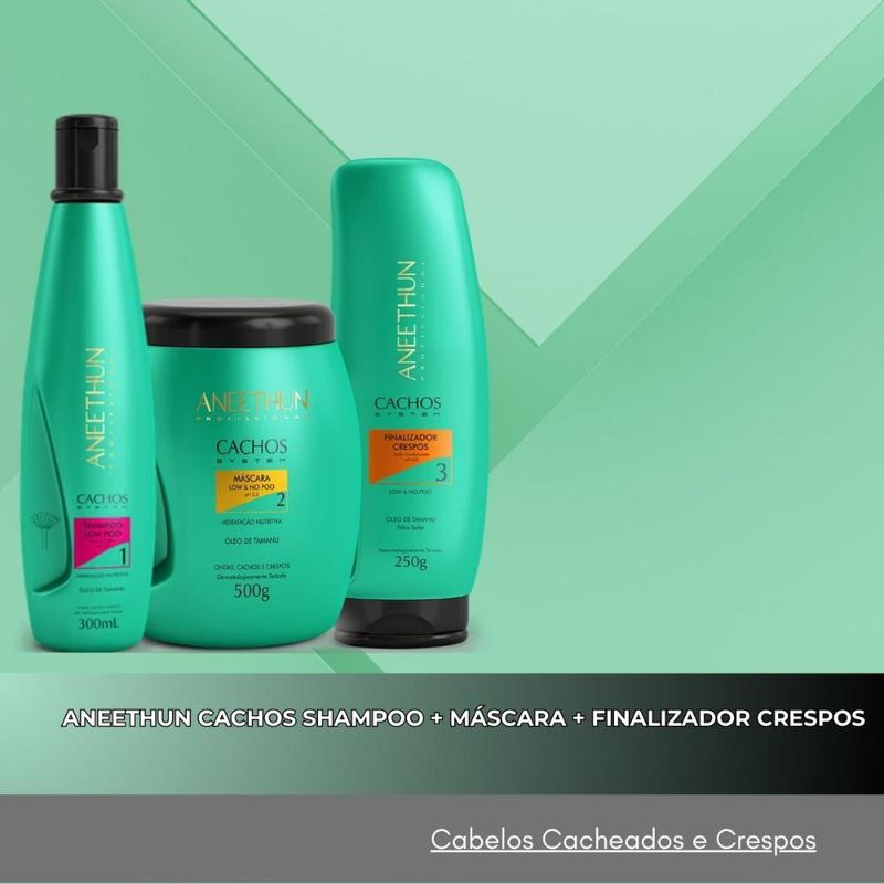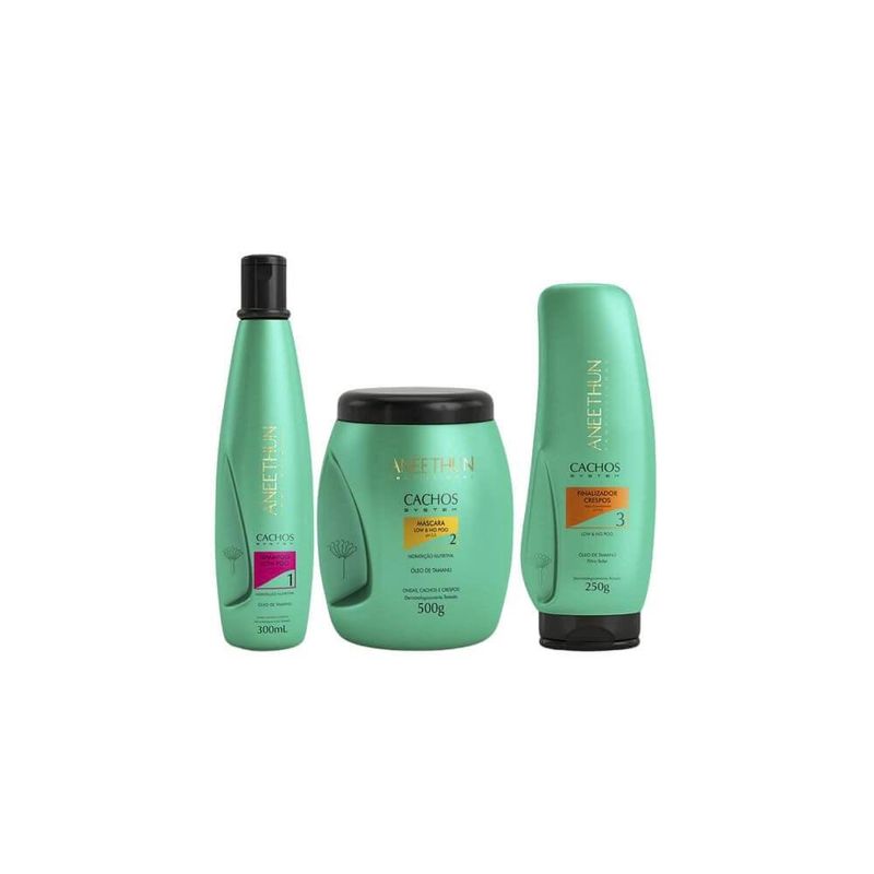 Aneethun Cachos Shampoo 300ml + Máscara 500g + Finalizador Crespos 250g