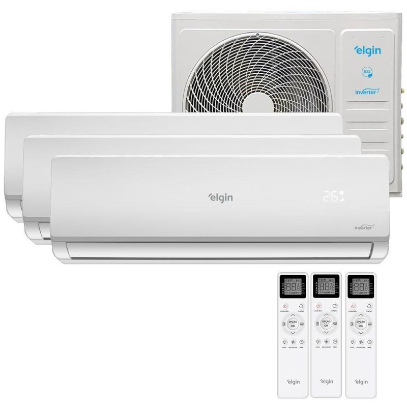 Ar Condicionado Tri Split Inverter Elgin 27000 BTUs (HW 09K+12K+18K) Quente e Frio 220V – Eficiência e conforto em três ambientes