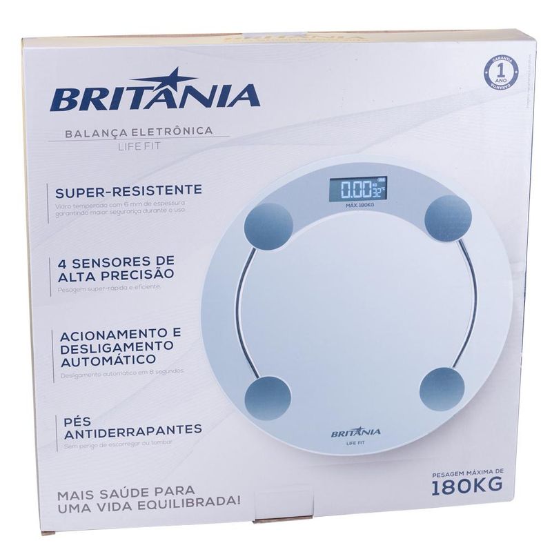 Balança Digital de Vidro 180kg Britânia Life Fit BBL04TR