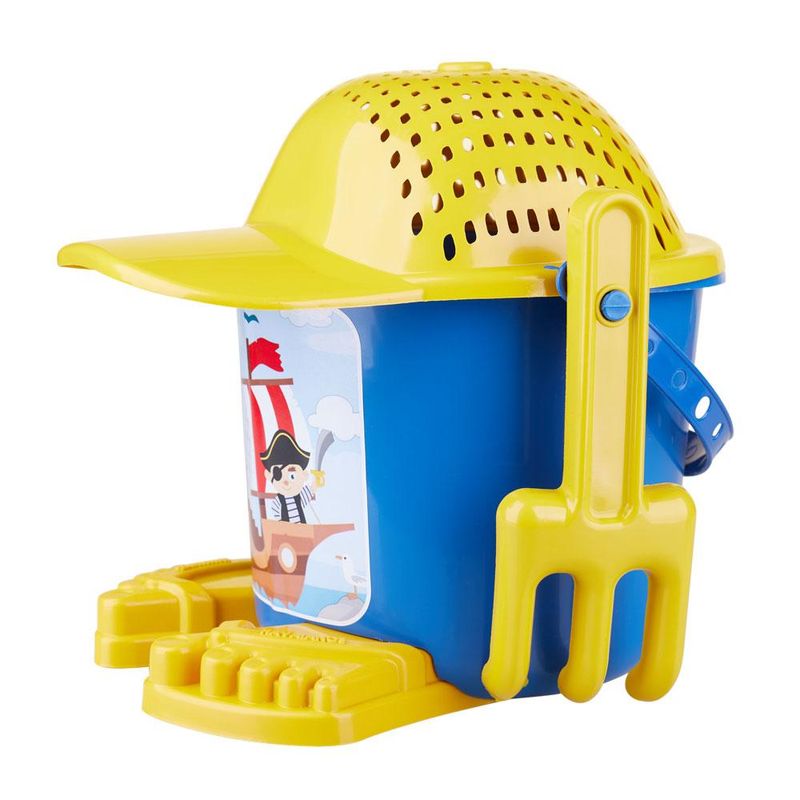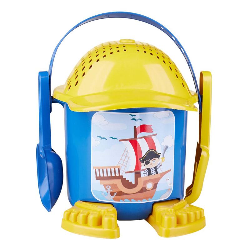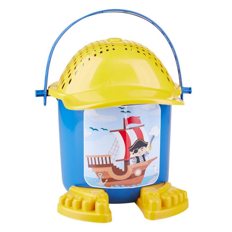 O Balde de Praia Dudu Kendy é um belo conjunto para a criançada se divertir na areia da praia. O Kit vem com duas peças plásticas para moldar formas na areia, acompanha pazinha, rastelo e uma peneira em forma de boné.