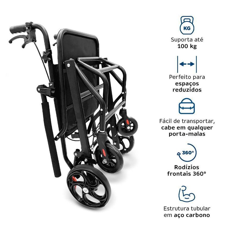 Cadeira de Transporte Dellamed em Aço Dobrável até 100kg D90 – Conforto, segurança e praticidade em cada detalhe