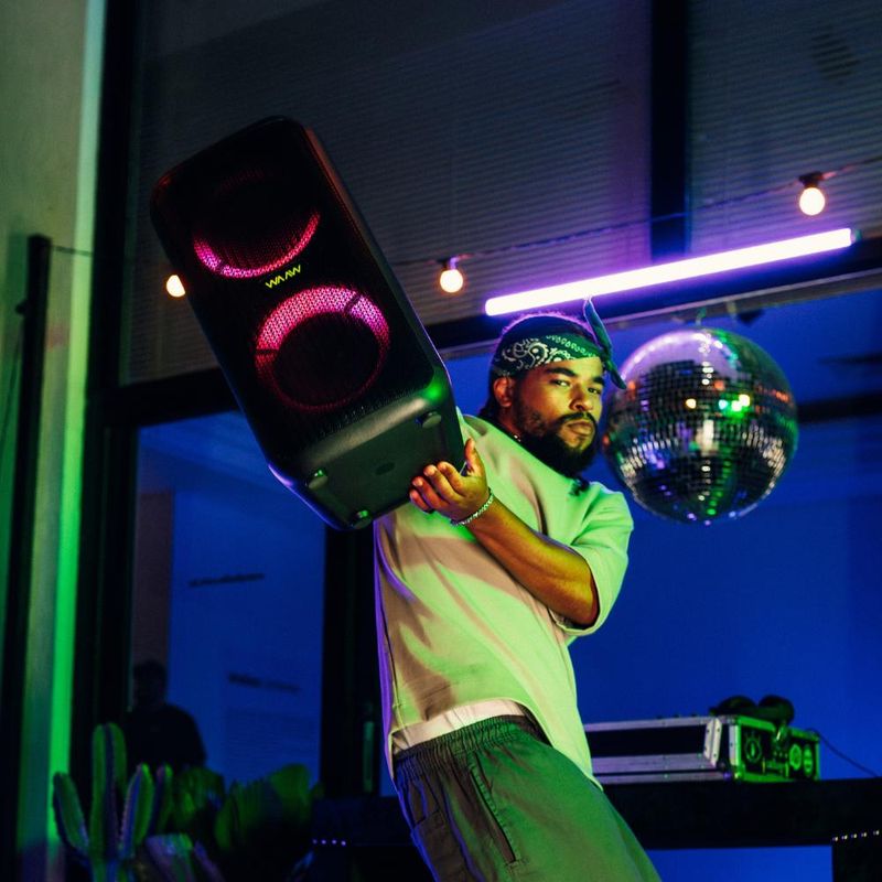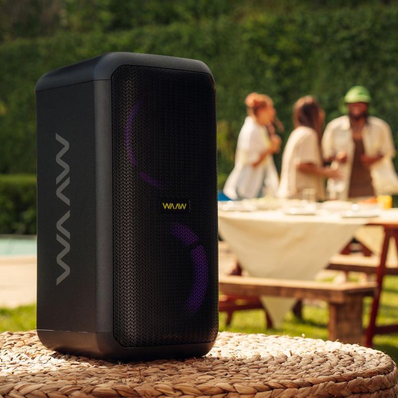 A Caixa de Som WAAW INFINITE 200 é também um espetáculo visual. Seu show de luzes dinâmico, com LEDs integrados na caixa de som, cria um ambiente visualmente impressionante que se sincroniza perfeitamente com o ritmo da música.