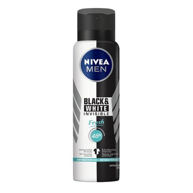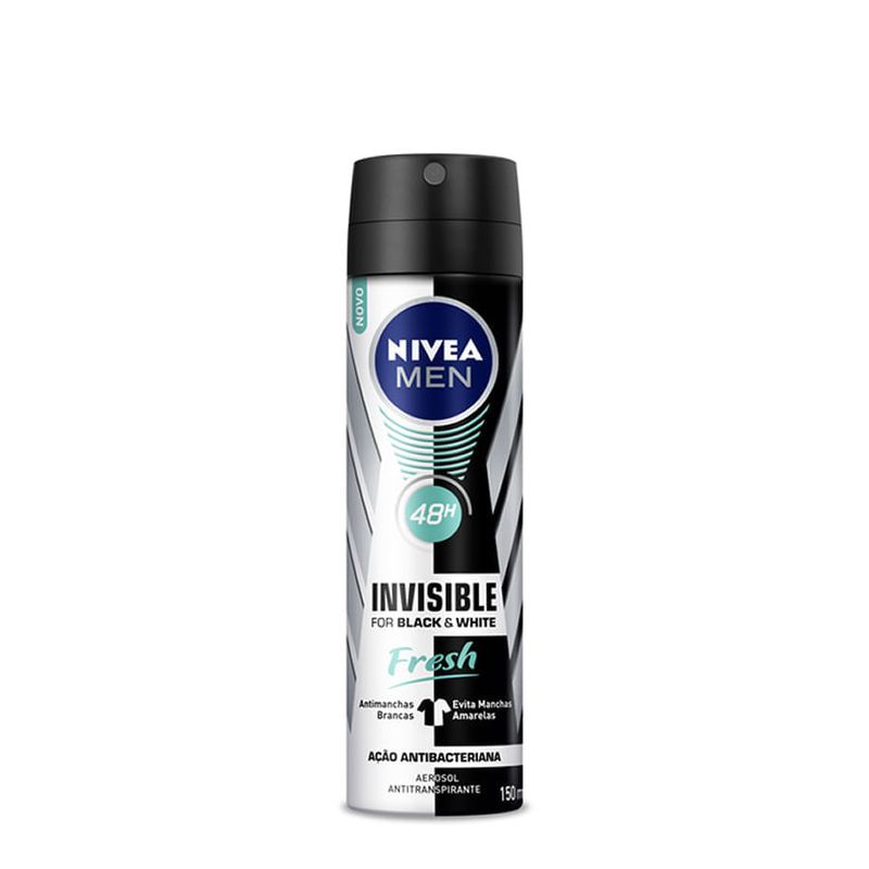 O Nivea Men Black&White Invisible Fresh é um desodorante antitranspirante com tecnologia que previne manchas brancas e amareladas, causadas pela transpiração, em roupas pretas e brancas.