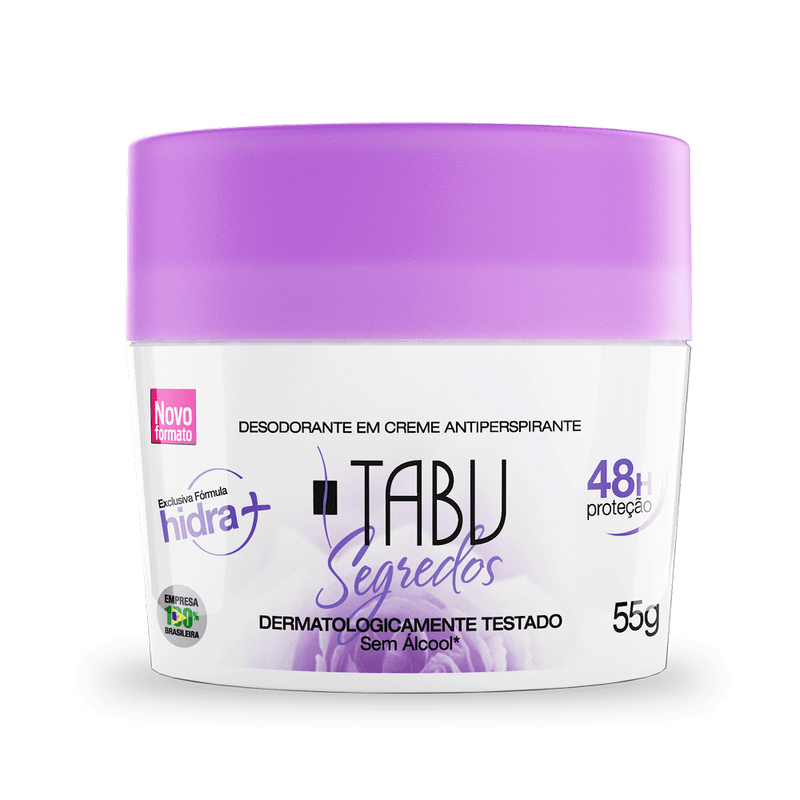 O Desodorante Creme Tabu Segredos possui fórmula especialmente desenvolvida com ingredientes exclusivos e naturais, que promovem a hidratação das axilas por até 48 horas.