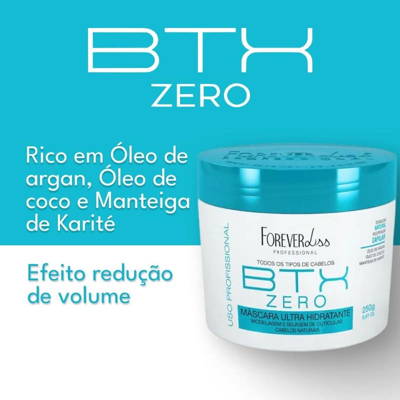 O Botox Zero Forever Liss 1Kg promove aos fios Hidratação Profunda, Nutrição, Brilho e Maciez além de proporcionar alinhamentos dos fios com 0% de Formol. Age eliminando o frizz, proporcionando um liso natural e rico em propriedades hidratantes e nutritivas, que seu cabelo necessita para ser saudável. Além disso, reconstitui a estrutura dos fios e repõe a massa perdida. Não possui cheiro forte, não faz fumaça e não provoca ardência no couro cabeludo. Seque completamente os cabelos com uma toalha. Separe o cabelo em partes; Com o auxílio de um pente e pincel, inicie o processo de aplicação do Btox Zero por todo o comprimento dos fios em mechas finas, respeitando 1cm da raiz; Deixe o produto em pausa sobre os fios, de acordo com estrutura do cabelo (de 20 minutos para cabelos levemente ondulados, até 30 minutos para cabelos mais resistentes); Após o tempo de pausa, remova o excesso com pente ou leve enxágue, removendo 50% do produto (para cabelos loiros ou coloridos, remover 70%); Seque 100% os cabelos, com escova e secador; Finalize com prancha, 10 a 15x cada mecha, em temperatura entre 200 e 230ºC (390 a 440ºF); Após finalizar, lave os cabelos, removendo qualquer vestígio do produto; Pode ser aplicado condicionador ou máscara de hidratação; Seque apenas com toalha e secador e finalize como desejar. Lavar os cabelos nos dias posteriores com shampoos de pH abaixo de 5,5.