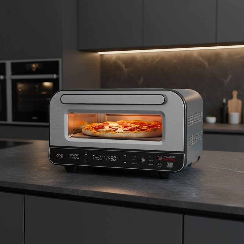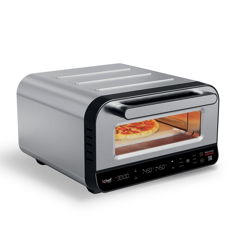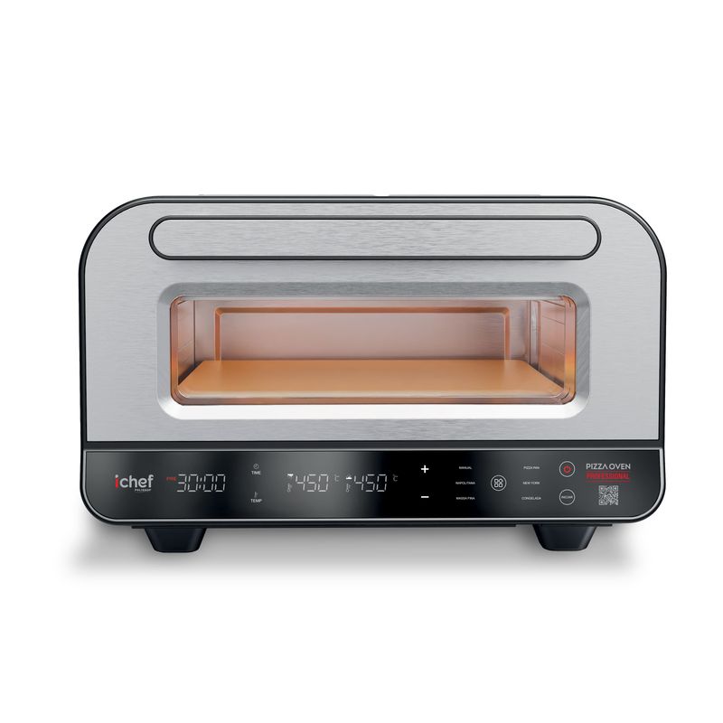 Sinta o sabor de uma pizzaria profissional direto na sua casa! Com ichef Pizza Oven Professional você tem resultado perfeito, em cada preparo! Ele alcança incríveis 450°C e entrega pizzas com massa aerada, bordas crocantes e recheio derretendo. Com controle total de temperatura, funções automáticas e design compacto, ele transforma qualquer cozinha em uma verdadeira estação gourmet.