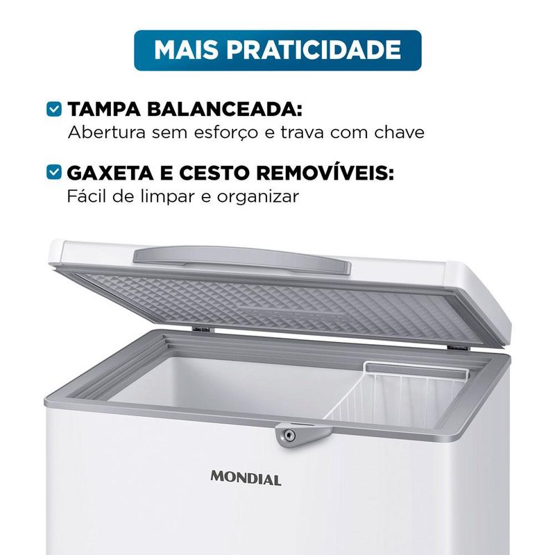 O Freezer Horizontal da Mondial 150 Litros é a solução ideal para quem busca praticidade, eficiência e organização ao armazenar alimentos e bebidas. Com congelamento rápido, oferece maior conservação dos produtos. Compacto e versátil, ele se adapta perfeitamente à cozinha, área de serviço ou até mesmo em ambientes comerciais.