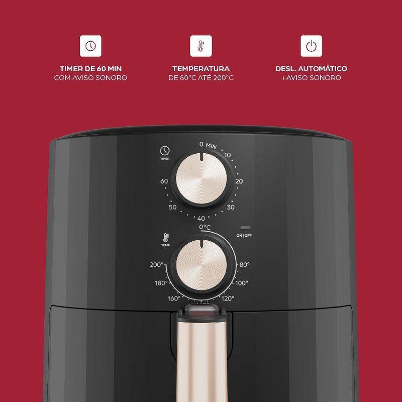 Com potência de 1500?W, temperatura ajustável de 80?°C a 200?°C e timer de até 60 minutos, você tem controle total sobre o ponto de seus alimentos. O desligamento automático, luz indicadora de funcionamento e aviso sonoro garantem segurança e praticidade no dia a dia.
