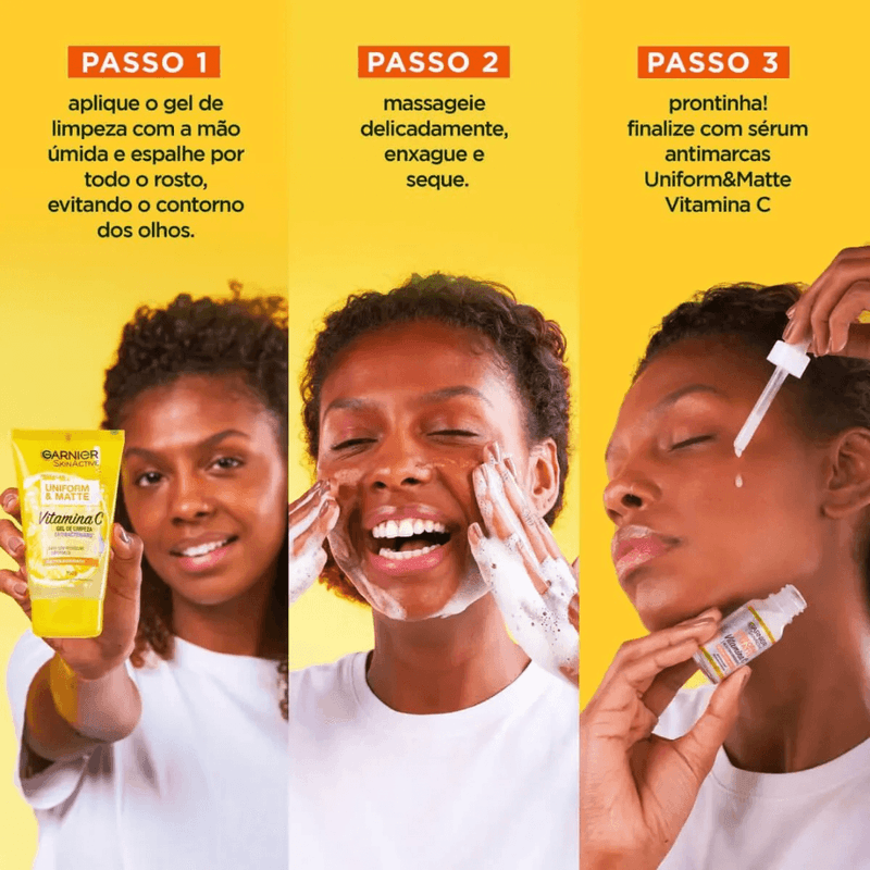 Gel de Limpeza Facial Antibacteriano Garnier Uniform&Matte Vitamina C 150g