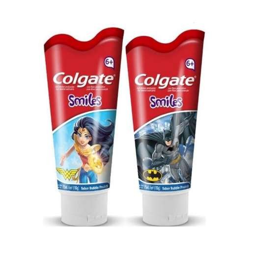 Creme Dental Colgate Smiles Batman & Mulher Maravilha agrada e incentiva a escovação diária e auxilia no combate à cáries e placas bacterianas. Com tampa de abertura rápida e fácil de usar. Creme Dental Colgate Smiles Batman & Mulher Maravilha transforma o momento da escovação em algo divertido para os seus filhos. Recomendado para crianças com idade entre 2 e 6 anos. Modo de usar: Escove os dentes adequadamente após cada refeição, três vezes ao dia ou segundo a recomendação do dentista. A IMAGEM DO PRODUTO É MERAMENTE ILUSTRATIVA. PRODUTO SEM ESCOLHA DE PERSONAGEM. SERÁ ENVIADO O PERSONAGEM DISPONÍVEL NO MOMENTO DA COMPRA.