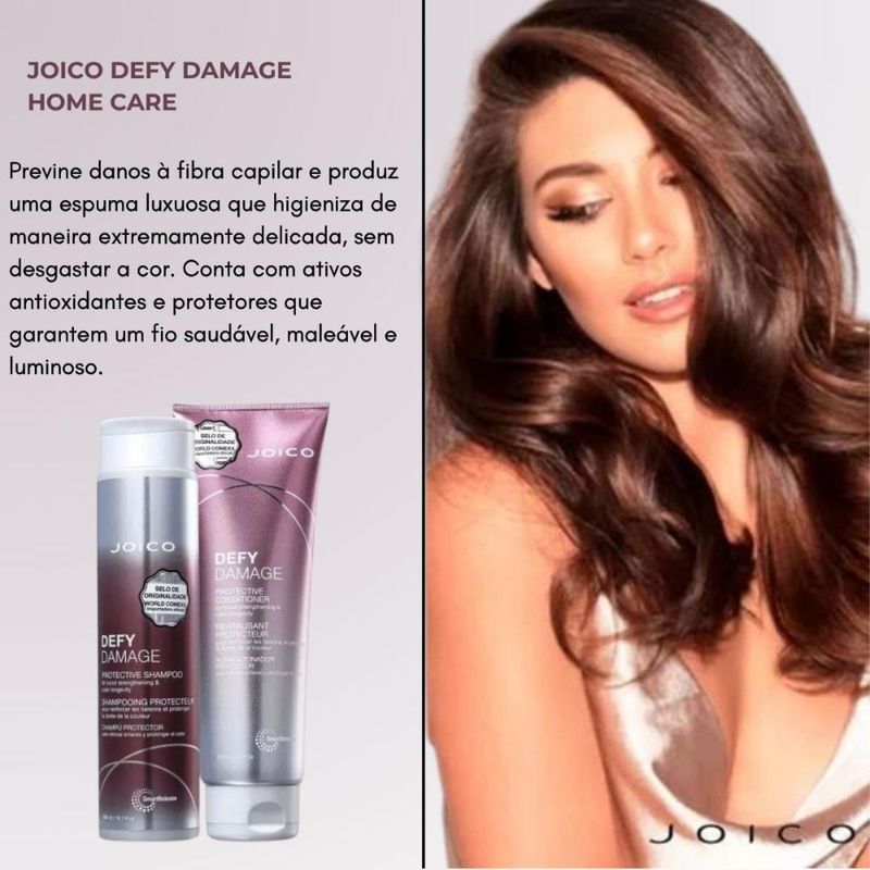 01 - Joico Defy Damage Protective - Shampoo 300ml: produz uma espuma luxuosa que higieniza de maneira extremamente delicada, sem desgastar a cor.