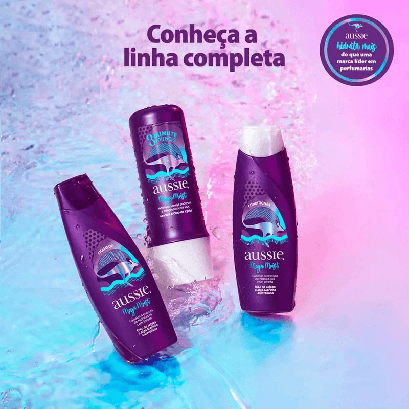 Kit Aussie Mega Moist Shampoo180ml + Creme de Tratamento 3 Minute Miracle 236ml