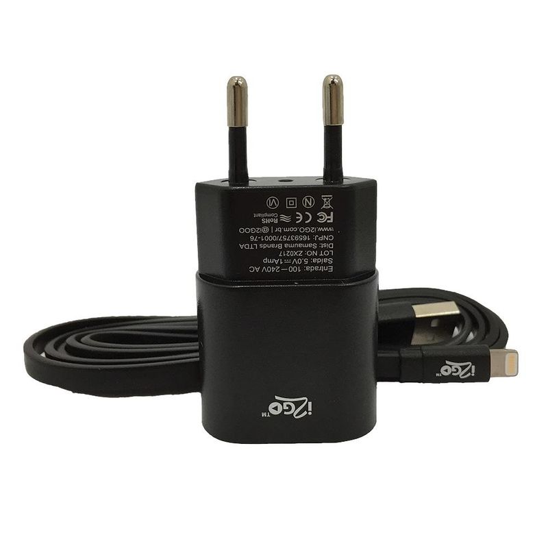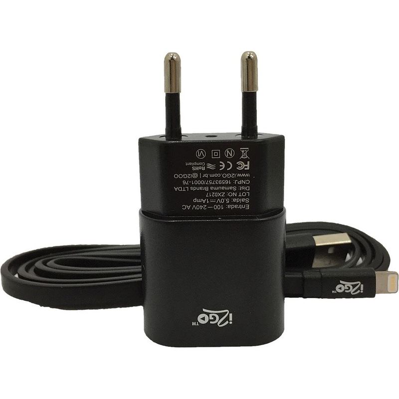 Kit Carregador de Parede com Cabo Lightning I2GO I2GKIT003BK Preto