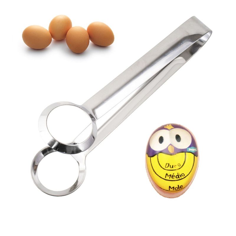 Kit Pinça Pegadora para Ovos e Timer Temporizador Ovo Prana