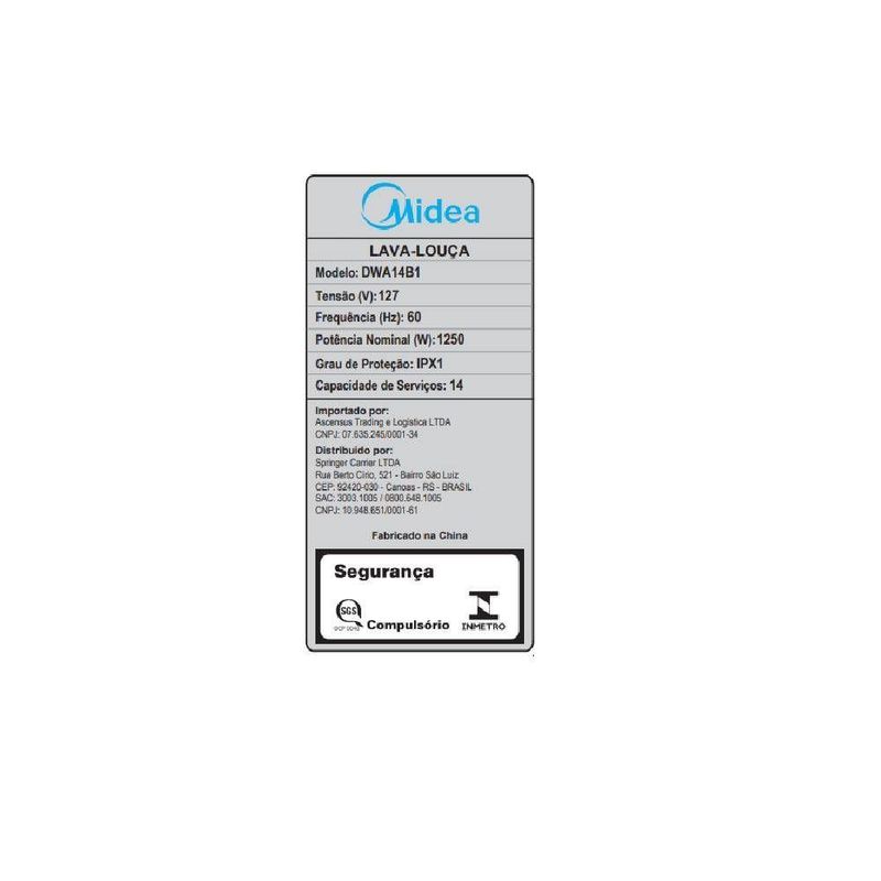 Lava Louça Midea Branca 127V 14 Serviços DWA14B1