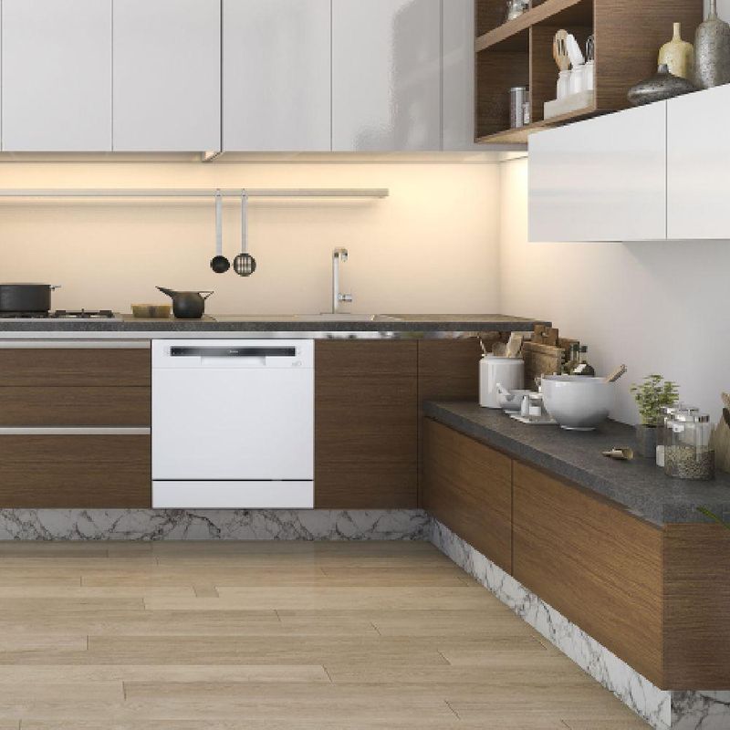 Facilite sua rotina na cozinha com a Lava-Louças Midea. Compacta e eficiente, ela oferece uma lavagem completa sem desperdício de água e energia, garantindo praticidade no seu dia a dia. Com capacidade para 8 serviços, elimina a sujeira mais pesada com sua função de pré-lavagem, evitando odores e facilitando a higienização. O programa Intensivo esteriliza suas louças a 70 C, proporcionando máxima limpeza e segurança. Pensando na economia, conta com o programa ECO, que reduz o consumo de água e energia sem comprometer a eficiência da lavagem. Além disso, oferece a opção de adiar o início do ciclo em 2, 4 ou 8 horas, permitindo que você programe a lavagem de acordo com sua rotina. Com diversos programas de lavagem, se adapta às suas necessidades. O modo Rápido é ideal para louças levemente sujas, enquanto o programa 1 Hora garante a limpeza completa em apenas 60 minutos. Já o modo Normal é perfeito para o uso diário, limpando panelas, pratos e copos com eficiência. Seu design moderno em aço inox interno e gabinete branco agrega elegância à sua cozinha. Possui painel de controle por botão, display LED e luz indicadora de torneira, proporcionando facilidade no uso. Com nível de ruído de apenas 49 dB, ela opera silenciosamente, garantindo mais conforto para o seu lar. A Lava-Louças Midea 8 serviços acompanha mangueira de abastecimento de água e de drenagem, cestos ajustáveis e suporte para talheres, otimizando o espaço interno. Adquira já a sua Lava-Louças Midea e transforme sua experiência na cozinha!