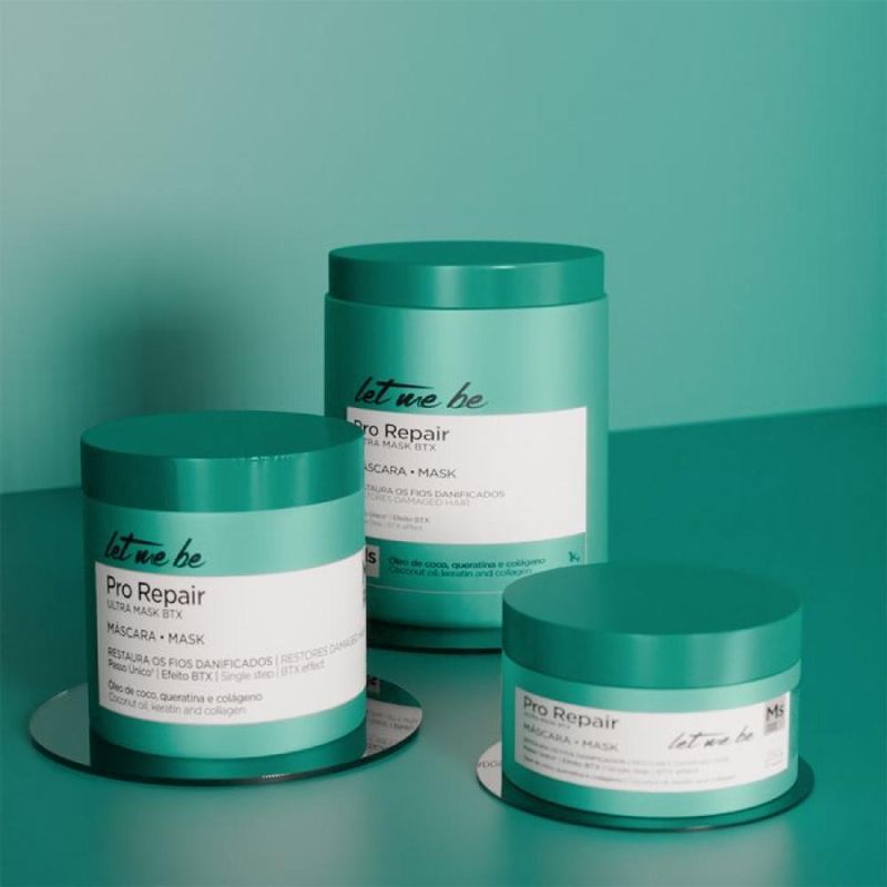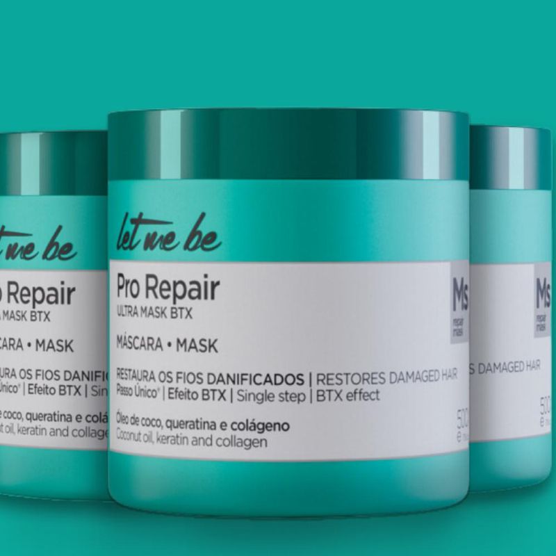 A máscara Let Me Be Pro Repair Ultra Mask possui formulação rica em Coconut Oil, queratina, colágeno e polímero condicionante de alta performance, que sob ativação térmica restaura os fios extremamente danificados.