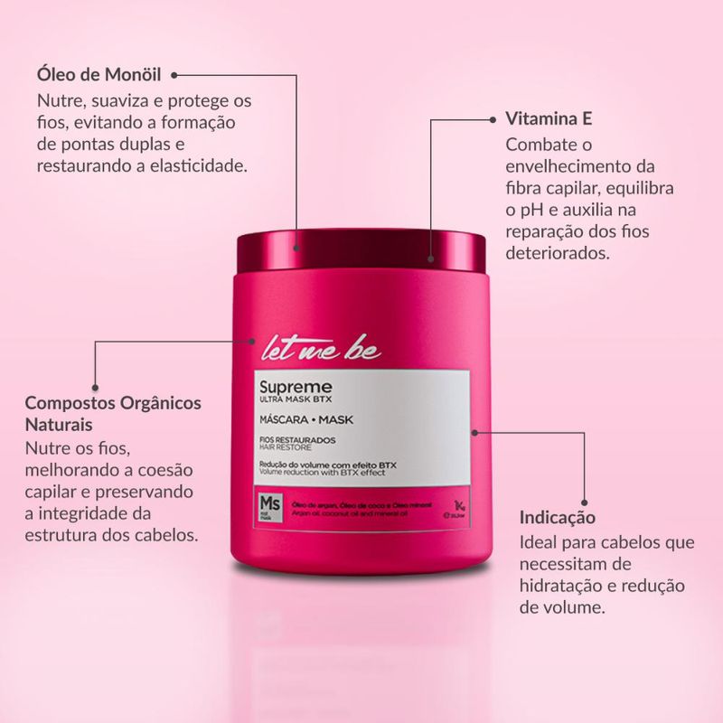 A linha Home Care Supreme é ideal para cabelos extremamente porosos, desvitalizados e sem vida. A máscara mantém os fios extremamente recuperados e cauterizados, reparando a estrutura danificada da queratina. O resultado é um cabelo forte, altamente nutrido e com movimento.