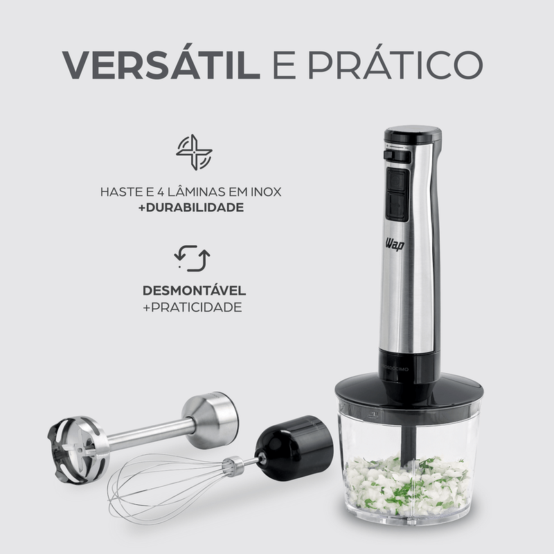 O design do mixer 3 em 1 WAP torna a troca de acessórios e a limpeza rápida e eficiente, para que você o mantenha sempre pronto para uso sem esforço.