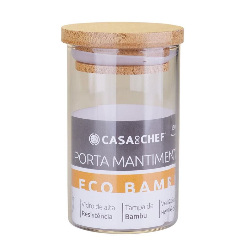 Adquira nossa variedade de Porta Mantimentos de Vidro Redondo 150ml com Tampa de Bambu da Casa do Chef para sua cozinha aqui na Casa&Vídeo!