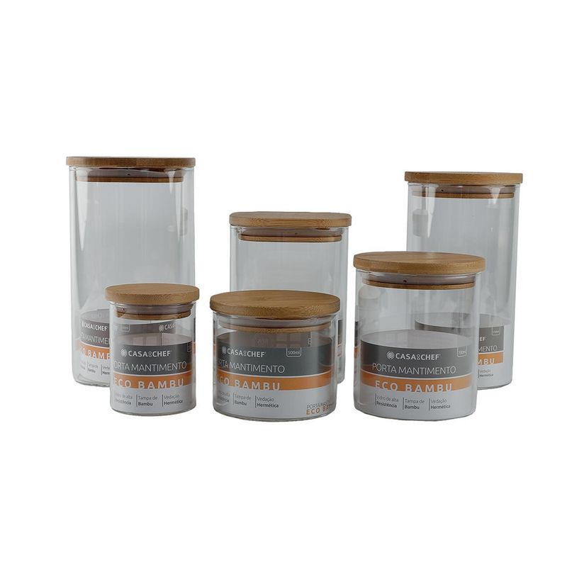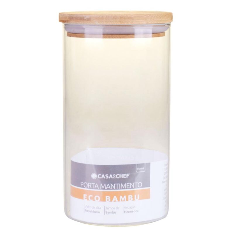 Porta Mantimento Vidro com Tampa Bamboo Redondo 1.1L CV212780 Casa do Chef