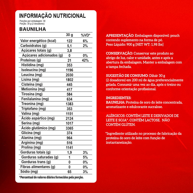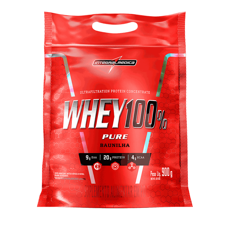 O Whey 100% Pure Pouch é o suplemento ideal e essencial para quem busca ganho de massa magra e recuperação muscular. Composto pela proteína concentrada do soro de leite, são 21 g de proteína por dose, 9,7 g de aminoácidos essenciais e 4,6 g de BCAA. Uma ótima opção para o pós treino, o Whey 100% Pure Pouch auxilia na manutenção da massa magra, possui baixo teor de carboidrato, gordura e sódio. Zero Glúten. Alta qualidade para a sua suplementação, o Whey 100% Pure Integralmédica contém matéria-prima importada, e ótima absorção pelo organismo, evitando a sensação de inchaço após o consumo. A proteína do soro é a fonte mais nobre de proteína do leite com alto valor biológico, isso devido a sua alta concentração de aminoácidos essenciais e aminoácidos de cadeia ramificada (BCAA), esses aminoácidos têm papel fundamental na síntese de proteínas e construção muscular. Whey 100% Pure Integralmédica está disponível em 6 sabores, versões pote de 900g, pote de 450g, Pouch de 900g e Pouch de 1,8kg.