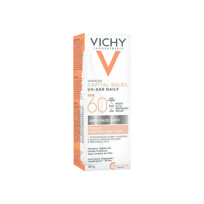 O Protetor Solar Facial Antioxidante FPS 60 Vichy Capital Soleil 2.0 40g oferece alta proteção solar para a pele do rosto, com FPS 60, protegendo contra os danos causados pelos raios UVA/UVB e ajudando a prevenir o envelhecimento precoce. Sua fórmula antioxidante combate os radicais livres e os danos causados pela poluição, mantendo a pele hidratada e protegida. Ideal para uso diário, proporciona uma textura leve e não oleosa, deixando a pele suave e protegida ao longo do dia.