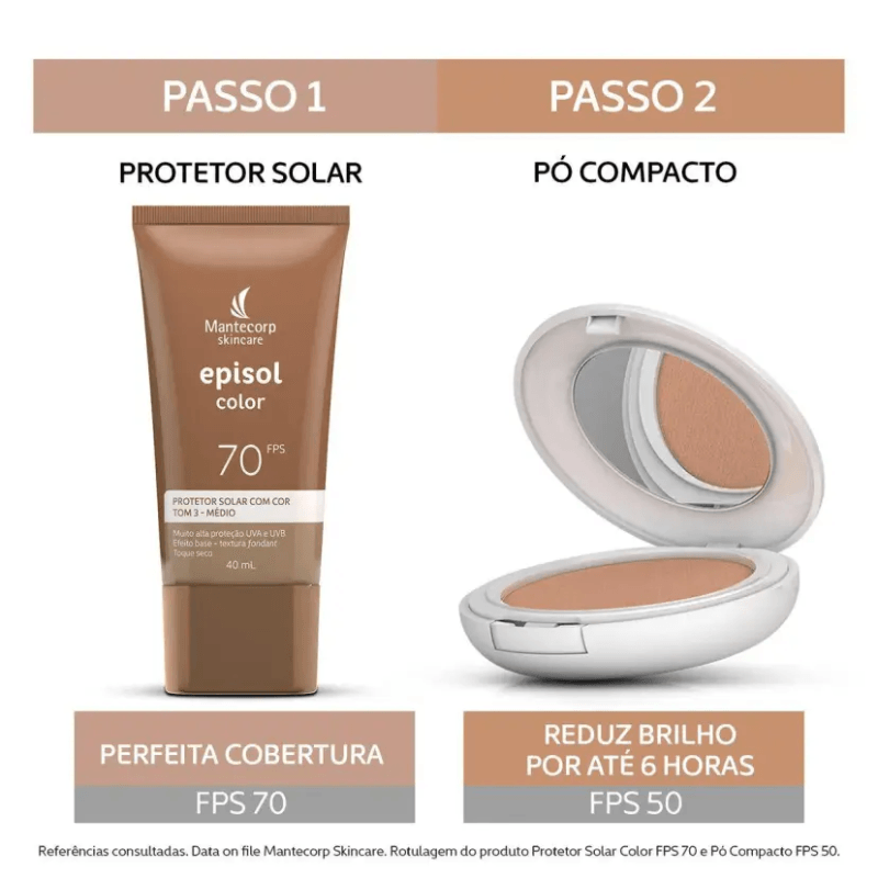Episol Color é uma linha de proteção solar com cor que promove cobertura perfeita e uniforme da pele, com efeito fosco e toque seco.