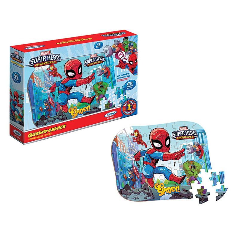 O quebra-cabeça Super Hero Adventures contendo 60 peças tem a temática Super hero com os super heróis mais amados do universo em uma única cena.