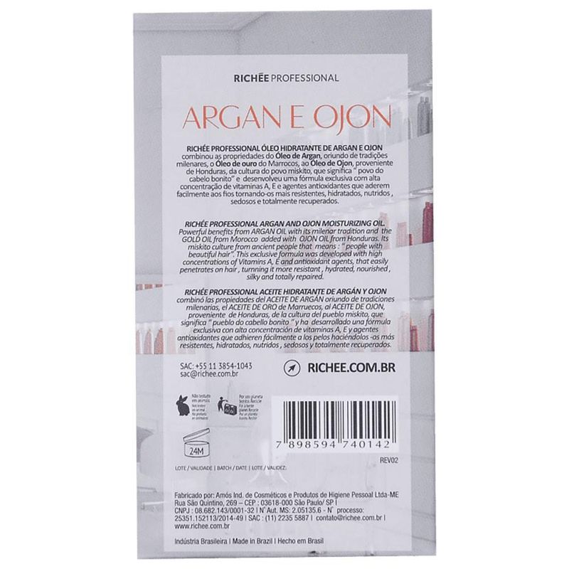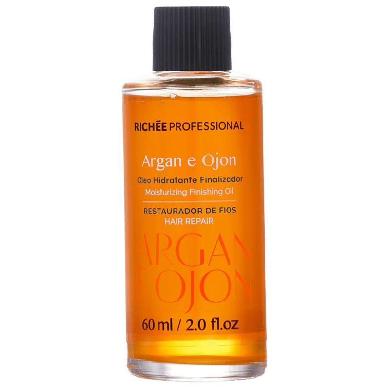 Richée Professional Argan e Ojon traz a combinação dos óleos de Argan e Ojon, de textura leve e altamente emoliente. Pode ser usado como finalizador, antifrizz e para doar brilho.