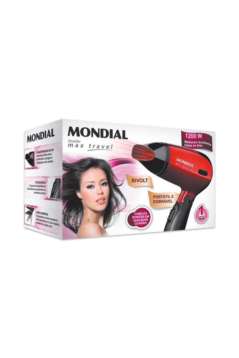 Moderno e prático o Secador de Cabelo Mondial Max Travel SC10 Vermelho - Bivolt vai deixar seus cabelos muito mais bonitos em 2 minutos!