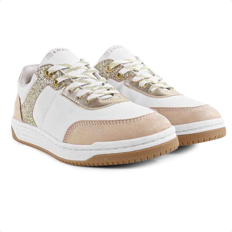 As costuras e elementos decorativos na lateral do tênis são um dos principais destaques. Conferem um toque de brilho, fazendo com que ele se destaque entre os modelos tradicionais.