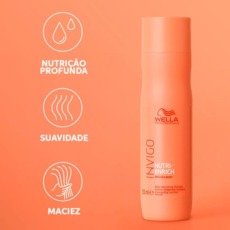 Shampoo para cabelos secos, ressecados ou quimicamente tratados. Wella Professionals Invigo Nutri-Enrich Shampoo tem o poder de hidratar e nutrir os fios desde o momento da lavagem e, assim, vai muito além de limpar.