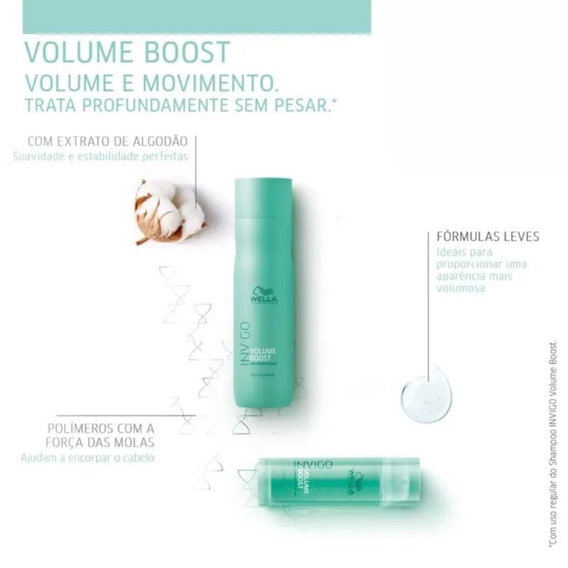 Kit de tratamento para cabelos finos. Kit Wella Professionals Invigo Volume Boost Duo trata, encorpa e dá mais volume aos fios minguados e sem vida. Ideal para garantir o movimento desejado.