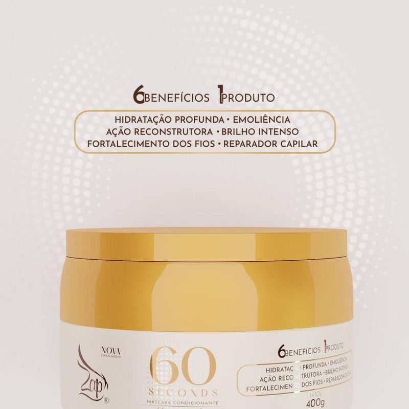 A Máscara Alto Impacto 60 Seconds Seis Em Um Zap, é um tratamento que une seis benefícios, são eles: brilho intenso, desembaraço e emoliência, ação reconstrutora, hidratação profunda, fortalecimento dos fios e reparador capilar.